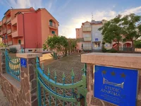 Первое здание, так называемый «жёлтый дом», предлагает 867 м² продуманно спланированного пространства на четырёх этажах. В подвале находятся котельная для газового отопления, солнечный водонагреватель, прачечная и подсобные помещения. На первом этаже расположены просторный ресторан с полностью оборудованной кухней, бар, столовая, другие подсобные помещения и рецепция. На верхних этажах расположены три отдельных двухкомнатных квартиры площадью около 65 м² и тринадцать уютных гостиничных номеров с собственными ванными комнатами и лоджиями. Всё полностью функционально, меблировано и готово к эксплуатации без каких-либо необходимых вмешательств.