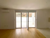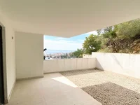 In an elevated location with a view of the city center, a modern apartment of top quality is for sale on the ground floor of a new building.