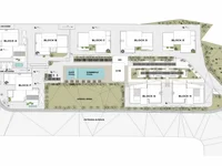 Земля попадает в жилую зону (Kα8) с размером участка 10553 кв.м., что обеспечивает плотность здания 60%, коэффициент покрытия 35%.