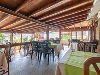 Ресторан отличается открытой планировкой с удобным расположением столов, а крытая терраса является идеальным пространством для обеда или ужина на свежем воздухе.