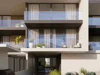 The apartment opens into a bright open-plan living and dining area, designed for both comfort and style. Large windows invite natural light, while sliding glass doors connect to a covered veranda, creating a seamless flow between indoor and outdoor living.