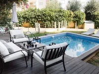 Расположенная на первом этаже квартира имеет прохладный бассейн, текущий прямо перед их балконом.