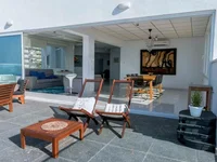 Этот большой пентхаус поставляется с одной двойной спальней с видом на море, одной стандартной двойной спальней с видом на море и одной уютной двойной спальней с видом на горы (все спальни включают полные жалюзи / слепые).