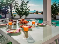 Внешне в собственности есть частный сад, бассейн, крытый и открытый паркинг, веранды.