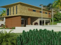 На первом этаже находится большая открытая гостиная, столовая и кухня с островом с кориановыми столешницами. На том же уровне находятся 3 спальни, одна из которых - главная спальня с люксом и прогулкой в шкафу. Все комнаты имеют захватывающий вид на море.