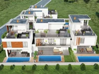 Современный дизайн отлично использует такие функции, как высококачественная керамическая отделка, уникальные стеклянные балконы и умная планировка жилых зон, предназначенных для обеспечения дополнительного пространства, конфиденциальности, а также вид на престижный район. Доступна вся система сплита, 2 пульта дистанционного управления на виллу для парковки, металлические заборы между виллами.