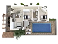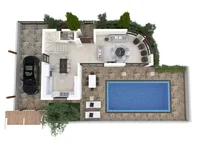 Внутренние зоны пола и веранды будут иметь керамические плитки первого качества, тогда как внешние области патио будут покрыты бетоном. Внешние двери и окна будут иметь теплоизоляционную алуминиевую раму, заполненную двойным остеклением (дополнительные жалюзи на внешней стороне окон спальни и противомоскитную сетку на кухне и в 2 окнах первого этажа).
