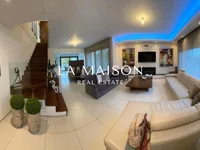 In one of the most beautiful areas of Nicosia, Strovolos, this Residence was constructed with high quality materials according to top-grade strict standards. On the ground floor there is a spacious open plan living room, dining room and a family sitting area with a modern kitchen, all with a view to the swimming pool, and a guest WC. On the first floor there are four bedrooms: the master bedroom with en-suite bathroom and wardrobes, and three more bedrooms that share a common bathroom.
