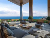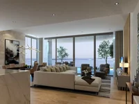 Квартира открывается в большой жилой и столовой открытой планировки, предназначенной для охвата естественного света и экспансивных видов. Окна от пола до потолка обрамляют горизонт моря и города, в то время как раздвижные двери соединяют интерьеры с большим балконом, создавая бесшовную жизнь в помещении. Пропорции позволяют как уютный семейный салон, так и изысканное развлекательное пространство.