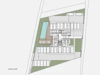 The 3-bedroom top-floor apartments feature a private roof garden with a pool