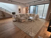 Первый этаж включает в себя просторную гостиную открытой планировки и кухню с доступом к большой веранде и бассейну, а также три спальни.