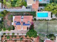 Stunning 6-bedroom villa set on a spacious plot, featuring a 30sqm pool and a professional-standard tennis court. Surrounded by expansive, beautifully maintained gardens with mature fruit trees, this property offers privacy and tranquility. Nestled on a hill in a prestigious neighborhood near Cape Greco, Ayia Napa, the villa boasts 4 en-suite bedrooms, including one with an adjoining room perfect for conversion into a walk-in wardrobe. The large, modern kitchen overlooks the garden and includes a bar and generous dining area, while the living and sitting areas provide ample space for relaxation and entertaining. The pool area is complemented by its own mature garden, creating additional serene spots for unwinding. With easy access to all nearby amenities, this villa perfectly combines luxury, comfort, and convenience.