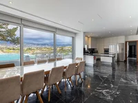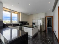 Четырёхуровневая вилла соединена лифтом и сочетает в себе продуманную архитектуру с роскошной инфраструктурой. Просторные гостиные и столовые с панорамным остеклением выходят на террасу с видом на море, а семь спален с ванными комнатами предлагают абсолютный комфорт. Две мастер-спальни поражают размерами и дизайнерскими ванными, сравнимыми с лучшими спа-курортами.