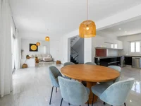 Просторный участок с ландшафтным садом, частным бассейном и прямым выходом к берегу делает эту виллу настоящей жемчужиной. Первый этаж включает светлую зону гостиной и столовой с открытой планировкой, современную оборудованную кухню и гостевой санузел. Все помещения выходят на крытую веранду и солнечный внутренний двор — идеальное место для отдыха у моря.