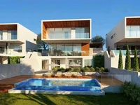 Этот роскошный проект представляет собой комплекс стильных, современных частных резиденций, расположенных в популярном пригороде Пафоса, и гармонично сочетающих близость к пляжу и прекрасный вид на море. Современные линии трехуровневых домов идеально гармонируют с окружающей природой. В каждой из этих вилл есть все удобства, необходимые для исключительно комфортной повседневной жизни, в том числе переливные бассейны, террасы на крыше, системы безопасности, камины, интеллектуальное управление режимов отопления и охлаждения, итальянские кухни и мебель и другие атрибуты роскошного образа жизни. На подземном этаже каждой виллы расположено подсобное помещение, что помогает не загромождать жилое пространство, а просторные первые этажи открытой планировки сосотоят из кухни, столовой и гостиной. Три большие спальни расположены на уровне второго этажа, и каждая из них оборудована собственной ванной комнатой для оптимального удобства. Переливные бассейны окружены деревянным настилом, а уютные сады засажены местными сортами деревьев, создавая естественное затенение. Являясь непревзойденным образцом уникального дизайна, безупречного строительства и премиального качества отделки, этот замечательный проект также имеет идеальное расположение в непосредственной близости от учебных заведений, супермаркетов, пляжа, парков и многих других необходимых объектов современной инфраструктуры. Энергоэффективность A