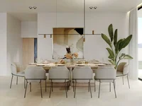 Вилла расположена на трех уровнях - на нижнем размещены гостевая студия, тренажерный зал, сауна, технические и складские помещения, а также крытая парковка на 2 автомобиля, первый этаж отведен под жилые помещения, а на верхнем этаже расположены 4 просторные спальни.