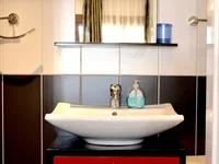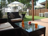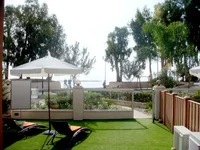 This seafront apartment features a contemporary design with high-quality materials and advanced construction technology. Every room offers direct panoramic sea views. Located on the first coastline, just 10 meters from the sea. The apartment has a covered area of 67 m², a covered veranda of 12 m², and an open terrace with a private garden of 52 m². Fully furnished and equipped, it includes an LCD TV with satellite channels, air-conditioning, intercom with color monitor, double-glazed windows, and a fire alarm system. The living room features two comfortable armchairs and a large leather sofa that converts into a double bed with an orthopedic mattress. The Italian kitchen is fully fitted with an electric stove, oven, refrigerator, washing machine, extractor fan, microwave, electric kettle, coffee machine, and a dining table for six. The bedroom offers a large double bed and a spacious built-in wardrobe, while the bathroom includes a shower cabin, sink, and toilet. Outside, the private garden provides a comfortable sitting area with a sofa, wicker chairs, and a coffee table..