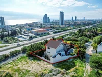 The property concerns a two-storey house with a swimming pool, in Mouttagiaka. It abuts a registered road on its south and northern boundaries, and on a public green area along its east boundary with a total frontage on the public roads of approximately 35 meters.