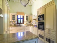 Upon entering the villa, one will notice the harmonious colours that blend from the flooring and wall finishes to the very high-end Italian Design Kitchen cupboards. The lounge area offers a very high wooden beam ceiling and a large fireplace for those warm cosy evenings during the winter period. A second lounge can be found for everyday living with fantastic views over the large swimming pool and towards the magnificently designed gardens of the villa. The property offers 4 spacious bedrooms and 4 bathrooms with a fifth room that has been converted into an office but can be utilized as a smaller bedroom. The dining area can be located right next to the superbly designed kitchen which has been fitted with modern name brand appliances.