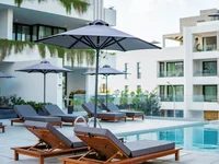Situated on Kings Avenue in the very heart of Kato Paphos, this amazing luxury development is a remarkable new project consisting of two five-storey buildings housing luxurious residential apartments. The architecture is a modern take on a fusion of concrete, wood, marble, bronzed aluminum and a lovely green façade carefully crafted to both complement and contrast with its surroundings. The sumptuous, contemporary apartments have been designed without compromise and built with the utmost attention to detail. Most boast outdoor space, some on a spectacular scale, and many offer breathtaking views over the lighthouse and the Mediterranean Sea. From design and construction to finishing materials and installations, every property at this complex is based on high-end specifications. Fixtures and fittings from some of the world’s most respected brands and trusted manufacturers have been combined to remarkable effect in the interiors of the property. The individually designed Italian kitchens are fitted with a full range of appliances that have been seamlessly integrated into bespoke layouts. In the bathrooms and en-suites, additions like heated feature walls enhance the elegant marble floors and walls with maximum comfort. Living areas feature either marble or timber flooring in a choice of colours*, while comfort cooling and thermostatically controlled underfloor heating is included in all rooms. DETAILED SPECIFICATION Kitchen: • Marble flooring (colour choice* available) • Italian handless fittings (colour choice* available) • Individually designed layouts • Corian worktops (colour choice* available) • Corian under-slung sink with italian chrome-finish mixer tap • MK wedge sockets under wall units • German stainless steel single oven • German stainless steel built-in combination microwave • German 4-ring induction hob • German fully integrated fridge/freezer • German fully integrated slim-line washing machine Bathroom: • Marble floor (colour choice* available) • Floor to ceiling marble walls (colour choice* available) • Italian white sanitary ware • Wall-mounted WC pan with concealed cistern and soft seat and cover • Italian ceiling-mounted shower arm and head with separate hand shower and wall-mounted recessed controls • Individually designed vanity unit with demister illuminated mirror cabinet incorporating two shaver sockets and a magnifying mirror • Italian chrome-finish brassware • Walk-in shower with contemporary fixed glass screen • Wall mounted heated towel rail and hooks • LED recessed downlights Living Room & Inner Areas: • Marble flooring in hall and living areas (colour choice* available) • Pressure-lacquered doors • Individually designed fitted wardrobes (colour choice* available) Climate Control: • HEATING: Independent heat pump controlled under-floor heating in all rooms and hallways • COOLING: Concealed cooling system in all areas Electrical Fittings: • German free-standing washer/dryer in utility cupboard • Recessed LED downlights in all rooms • Scene-setting dimmable lighting in principal rooms • LED lighting on all balconies • External power socket on all terraces • Slim-line white sockets throughout • Satellite system or cable TV installation • Telephone and data points in principal rooms • Visual Intercom system at each apartment and the main entrance Communal Areas, Services & Facilities: • 12-hour concierge service • Furnished lobby area • Video controlled security entrance • Lifts to all floors • Landscaped communal gardens • Covered parking on ground level • Storage room on ground level • Outdoor rooftop swimming pool with sunbathing facilities. • Wi-Fi connection in all building Other Specification: • Solar system for heating water • Pressurized water system • Double glazing • Fly screens on all windows • Smoke detectors in all rooms • Energy performance building (built according to the latest 2017 EU standards and regulations Communal Areas, Services & Facilities: • 12-hour concierge service • Furnished lobby area • Video controlled security entrance • Lifts to all floors • Landscaped communal gardens • Covered parking on ground level • Storage room on ground level • Outdoor heated swimming pool with sunbathing facilities • Fitness and wellness centre • Wi-Fi connection in connection in the whole building