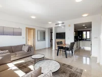 Квартира находится в уютном малоэтажном комплексе. Просторная гостиная с панорамными окнами по двум стенам наполнена светом и выходит на веранду с красивыми видами на море. Отдельная кухня полностью оборудована современной техникой и сочетает функциональность с лаконичным дизайном.