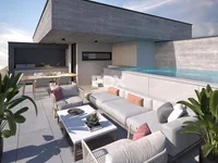 This penthouse is accessible via an elevator and comes with a private swimming pool, perfect for relaxing on warm days. The design also prioritizes energy efficiency, boasting an impressive Energy Efficiency rating of A.