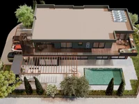 Outstanding Villa in Potamos Yermasoya (PAPAS Area), Limassol. Plot: 691 m² | Covered Area: 550 m² It offers permanent tranquility and exclusivity, while being in the very center of everything. The villa sits on a corner plot bordered by:• a pedestrian path on one side, • a mature green zone on the other,• and a cul de sac.Ground Floor Layout: • Expansive master suite with walk-in wardrobe, luxury bathroom, and direct access to the private garden and pool • Large open-plan kitchen and dining area leading to the garden • Separate dirty kitchen • Dedicated office/study • Gym/training room • Spacious storage room • Elevator connecting all levels Second Floor Layout: • 4 spacious en-suite bedrooms with panoramic south-facing windows, full of natural light • Spacious central living / play area connecting the bedrooms — ideal for children, guests, or relaxing as a family Additional Highlights: • Maid’s quarters with private kitchen, shower, WC, and natural light • Roof garden with panoramic views of the sea, Limassol, and the mountains • Private pool and generous barbecue/entertainment area • Beautiful landscaped garden that borders a public green area — creating a seamless, holistic continuation of greenery and calm • 3 covered parking spaces • Autonomous photovoltaic system• Private water well • Located in a fully built, peaceful luxury enclave — no vacant plots, no construction noise • Elegant Mediterranean-contemporary design, warm, luminous, and timeless • High-quality external blinds on all major windows for comfort, security, and privacy• A holistic living experience: natural light, silence, smart layout, and nature — in perfect balance, all while being in the heart of urban life and one of Limassol’s most convenient logistical hubs • At this stage, the future owner has full freedom to personalize: all interior materials and finishes are 100% customizable — a rare opportunity to co-create a luxury residence fully tailored to your taste and lifestyle. The property also has unrealized building density and coverage, allowing for the optional construction of a third floor.