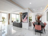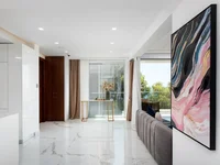 The apartment boasts top-quality finishes throughout, including marble flooring, a modern alarm system, and a private balcony overlooking the rear of the property. Residents enjoy 24-hour security, remote-controlled building entry, and secure direct access to the beach, ensuring both comfort and peace of mind. The layout offers a generous living and dining area, perfect for entertaining, while the bedrooms are bright and airy, designed with modern comfort in mind.