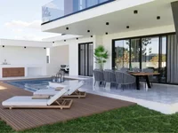 В отделке использованы премиальные материалы: термоалюминиевые окна, гранитные кухонные столешницы, высококачественная сантехника и керамика, а также современная подсветка. Дом оснащен крытым гаражом на два автомобиля, системой кондиционирования, фотоэлектрической установкой мощностью 4 кВт и соответствует классу энергоэффективности A, гармонично сочетая роскошь, комфорт и устойчивые технологии.