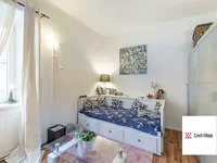 We offer for sale an apartment available 1+kk, the total area of which is 27.3 m2. The apartment is located on the raised ground floor of a well-maintained brick building without an elevator in Za poštou Street, Prague 10 — Strašnice. The apartment also includes a cellar cubicle.
