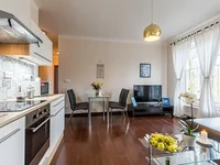 Part of the residential complex with six above-ground floors is a private pool, sauna, and gym. A 24-hour reception desk and a camera system, which secures the entire area to provide apartment owners with maximum security, are a matter of course in the closed residential complex.