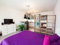 Предлагаем на продажу просторную и светлую квартиру планировки 1+kk (студия) площадью 43,6 м2. Квартира находится на 4 этаже популярного жилого проекта „Квартиры на Вацкове“ сданного в эксплуатацию в 2017 году. На входе в квартиру расположена большая прихожая размером 11 м2, где найдется достаточно места для встроенных шкафов и организации хранения вещей. Из прихожей можно попасть в совмещенный санузел с ванной и жилую комнату с кухонной зоной, которая имеет площадь 25 м2. В квартире были применены улучшенные стандарты отделки: качественная сантехника и керамическая плитка, ламинат. Кухонная линия была выполнена под заказ известным производителем кухонной мебели и оснащена всей необходимой техникой: полноразмерная стеклокерамическая варочная панель, электрическая духовка, холодильник с морозильной камерой, посудомоечная машина, микроволновая печь и наклонная вытяжка. В комнате также остается много свободного места для устройства систем хранения. Жилая комната имеет выход на балкон площадью 4,5 м2 видом в парк Проект выгодно отличается расположением в широком центре города с отличной транспортной доступностью. Жильцы могут пользоваться общим ухоженным садом с ландшафтным дизайном во внутреннем дворе дома. На территории комплекса также располагаются оживленные детские площадки для детей любого возраста. Транспортное сообщение обеспечено маршрутами автобусов № 133 и 155 с остановки Malešická, которая расположена в 250 м от комплекса. Дорога автобусом на переасдочную станцию метро Florenc в центре Праги займет всего 11 минут, а дорога до станции метро Želivského линии A займет всего 5 минут. В районе есть вся необходимая инфраструктура, супермаркеты BILLA и PENNY в пешей доступности, небольшие магазины потребительских товаров, кафе и рестораны по ул. Коневова.