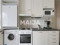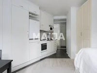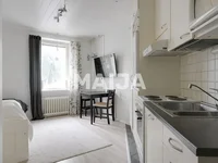 Look and fall in love! This small studio apartment has been ingeniously renovated. Although there are not many squares, then this apartment has all the functions for comfortable living. The kitchen also has a small washing machine hidden in the cupboard. The storage space has also been added nicely. Although the apartment is on the first floor, thanks to renewed windows and thick stone walls, sounds from the street can hardly be heard. Tram and bus stops are located next to each other, making it easy to get around the capital. Vallila has a great offer of various eateries and the Mäkelänrinne Swimming Centre offers a variety of recreational opportunities. Own plot.