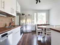 The kitchen is equipped with modern appliances such as induction hob, refrigerator, freezer and dishwasher. Heating is provided by district heating and central heating.