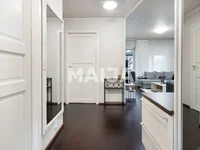 High quality and well maintained semi-detached house in a great location in Joensuu. A spacious living room and kitchen, two bedrooms and a private sauna provide a functional setting for everyday life. In addition, the home has a fireplace and an air heat pump, which bring both warmth and energy efficiency. A sheltered backyard charms with a large terrace, and a spacious garage brings year-round practicality.