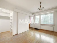The apartment has a glass-walled balcony that overlooks the green courtyard — the perfect place to enjoy, say, your morning coffee. Storage space can be found in the practical walk-in closet. The kitchen needs a full renovation, but otherwise the apartment can be easily upgraded to modern by painting the surfaces and sanding the beautiful parquet floor.