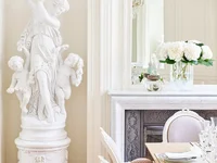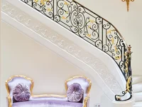 Внутренние пространства поражают своим размахом: торжественные приёмные залы с высокими потолками, изысканные декоративные элементы, мраморные полы, камины, авторские светильники. Резиденция создана для тех, кто ценит искусство жить красиво.