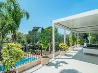 Большие террасы предлагают великолепные зоны для отдыха на свежем воздухе с прекрасными видами. Ухоженный сад окружает величественный бассейн с пул-хаусом, что создаёт идеальные условия для отдыха в солнечные дни и уютных вечеров в кругу близких.