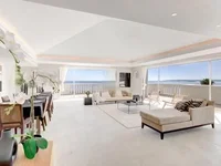 Частный лифт с прямым доступом в апартамент открывает просторные, наполненные светом интерьеры. Гостиные зоны — салон, столовая и бар — плавно переходят на террасы, создавая идеальное единство внутреннего и внешнего пространства на фоне бескрайнего моря.