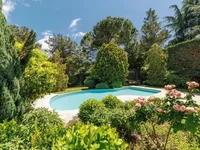 Спустившись по лестнице, вы попадаете на цокольный этаж (так называемого «Rez-de-jardin»), где находятся гостиная и столовая, затем отдельная кухня и еще одна главная спальня с ванной комнатой и гостевым туалетом. Здесь также расположены многочисленные гардеробные вдоль коридора и в главной спальне.