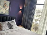 С совершенно новой мебелью и техникой, виды на центр города, квартира светлая, во всех комнатах есть балкон. В квартире остается техника и мебель.