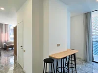 Описание: Гарантированный вид на море и парк. Новая мебель и техника. Новая квартира. Кондиционер, отопительный котел, телевизор, кровать, диван, шкафы. Балкон 17 м². Лобби на первом этаже.