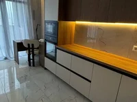 Продаётся квартира 1+1 50,5 м2. Большая гостиная с панорамными окнами и отдельная маленькая спальня. Тихая сторона, вид на город и горы, высокий 15 этаж. Квартира делалась для себя. Теплый пол по всей квартире интегрирован с умным домом. Умный дом. Все автоматизировано и управляется с телефона. (котёл, Сигнализация, датчики протечки воды, видео наблюдение (как охрана, присмотр за животными или детьми), посудомойка и умные кондиционеры. Чугунная парящая ванная. Вся техника новая и на гарантии. Возле дома вся необходимая инфраструктура и море! Лучший выбор покупки квартиры как для комфортной жизни,так и для сдачи в аренду/перепродажи!