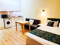 Продаётся большая студия. 100 м от моря, балкон с видом на море, центральное отопление. Район: хорошая транспортная доступность, тихий район, с возможностью долгосрочной парковки. Рядом: магазины (спар на первом этаже здания), бар, аптека, фруктовые и овощные лавки, салон красоты.