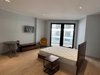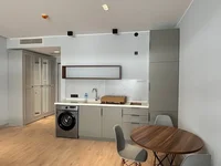 В студии выполнен качественный ремонт. С балкона открывается прямой вид на море. Квартира полностью укомплектована всей необходимой мебелью и бытовой техникой.