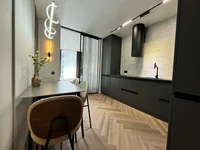 В квартире выполнен дизайнерский ремонт из высококачественных материалов, установлен тёплый пол и тёплая стена в санузле.