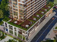 Светлая квартира с одной спальней и просторным лаундж-балконом. Расположена на 11 этаже, откуда открывается необыкновенный вид на море и горы.