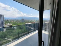 Из окон открывается вид на город и горы.