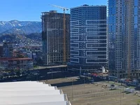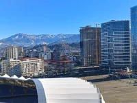Продаётся квартира в чёрном каркасе с видом на стадион.