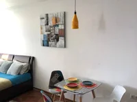 Студия полностью укомплектована мебелью и бытовой техникой.